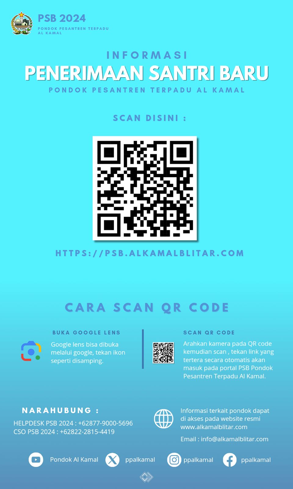 Kabar gembira! Pondok Pesantren Terpadu Al Kamal Kunir Wonodadi Blitar, kembali membuka pendaftaran santri pasan bulan Ramadhan 1443 H, dengan ketentuan sebagai berikut: Pendaftaran online